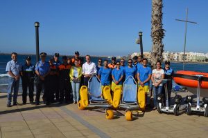 El equipo estará compuesto por 7 personas que desempeñarán funciones como socorristas a pie de playa, sanitarios y patrón de embarcación, contando con los recursos materiales y equipamiento necesarios. Como recursos complementarios se contará con la embarcación, sillas de aproximación y las sillas anfibias para hacer accesible el baño a personas con movilidad reducida o discapacidad física.