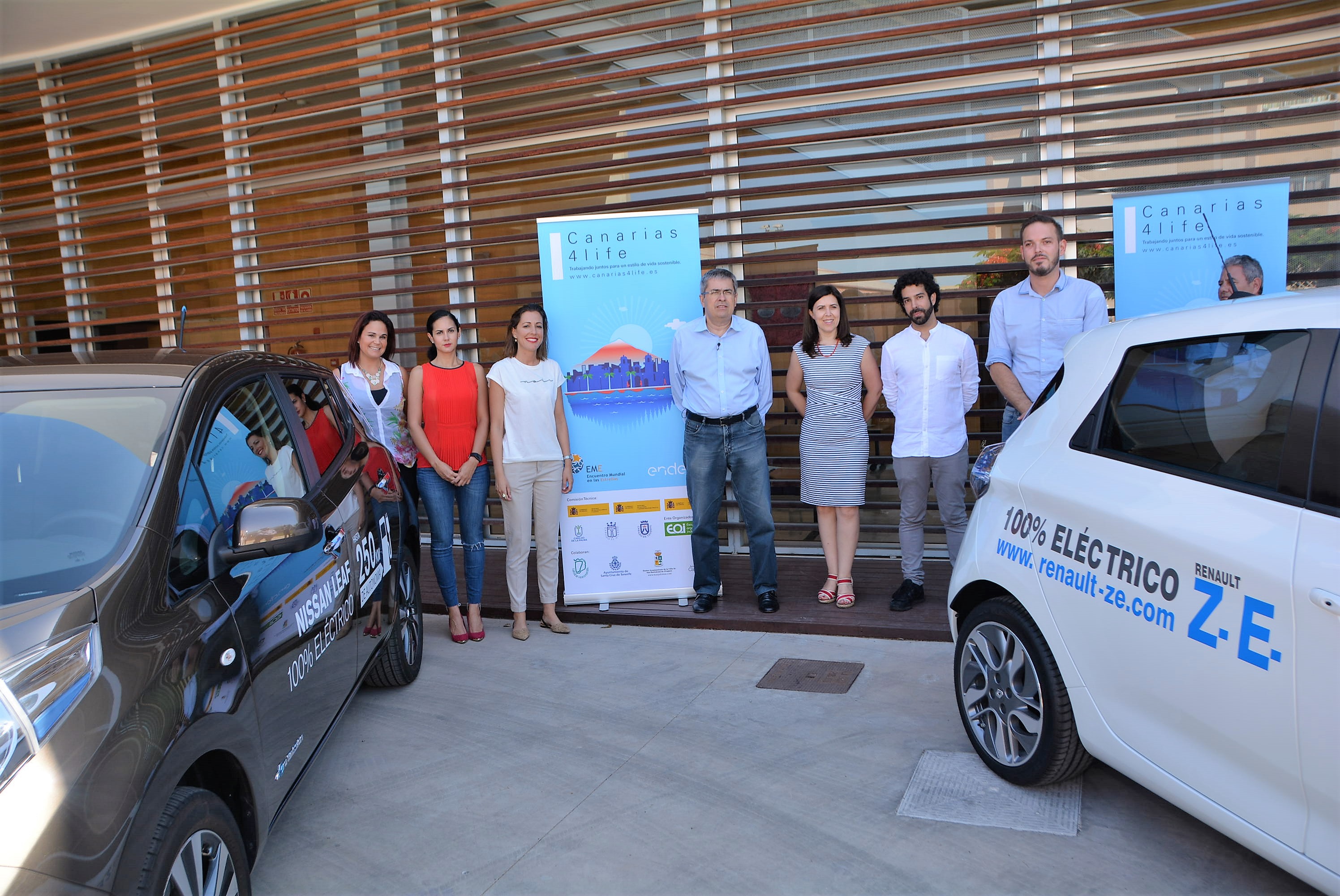 Antes de dar comienzo la actividad principal, conocían de primera mano, todos los asistentes, los dos coches eléctricos ubicados en los jardines del Centro Sociocultural de Maspalomas, un Nissan y un Renault que solo utilizan energía limpia.