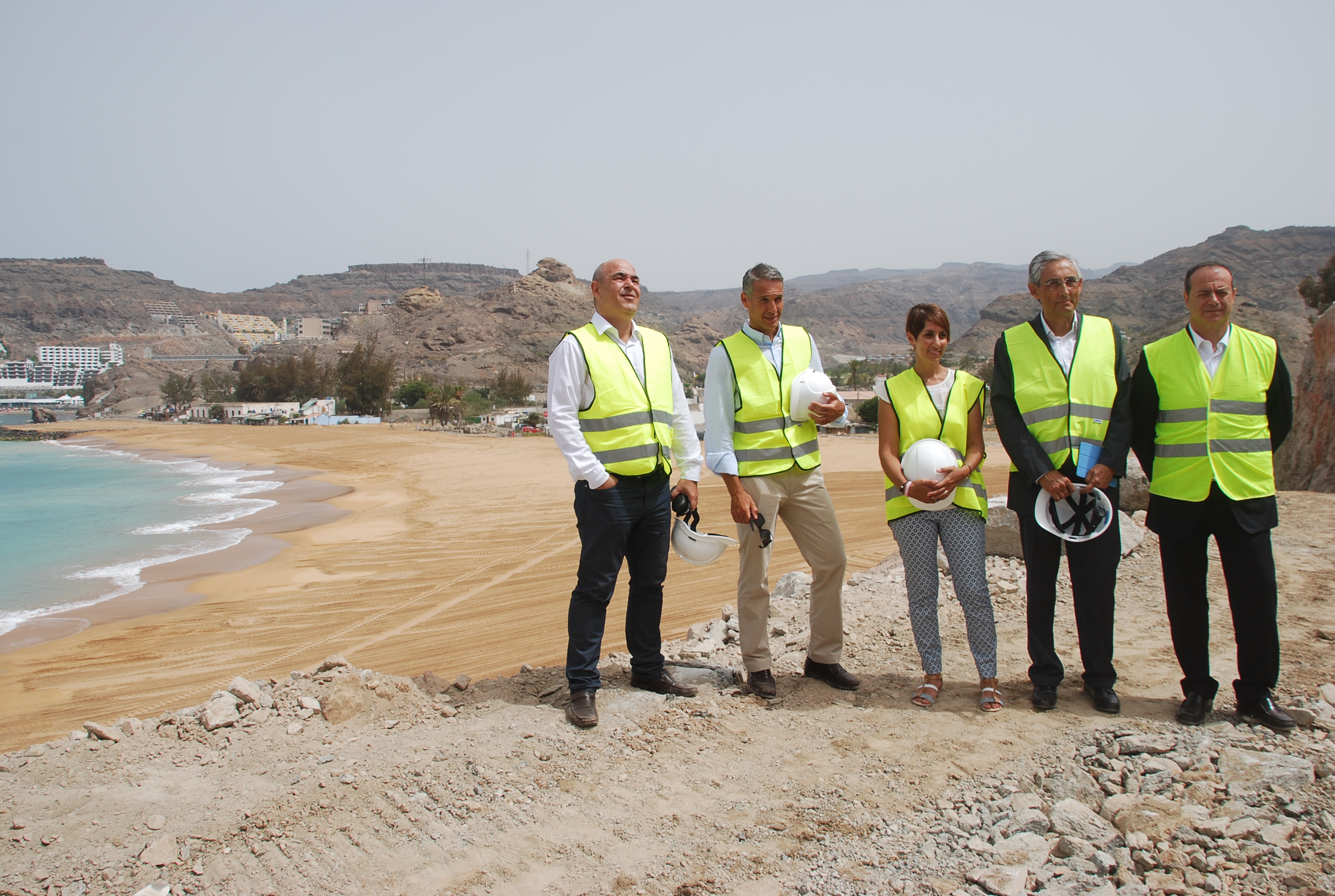 La alcaldesa de Mogán, Onalia Bueno, respaldó este martes 19 de julio la nueva playa de Anfi Tauro en una visita al emplazamiento junto a los representantes de la Federación de Empresarios de Hostelería y Turismo (FEHT) y los del grupo Anfi. La playa de Anfi Tauro es la primera realizada en Gran Canaria en los últimos 25 años y “con la playa finalizada culmina la oferta de playas artificiales en Mogán”, expuso Bueno.