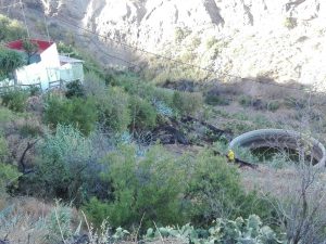 Afortunadamente la vivienda no se vio afectada, aunque sufrió daños en el sistema de riego y en algunos frutales. El incendio calcinó pasto, tuneras, pitas, cañas y algún almendro. La rápida actuación del personal de Medio Ambiente del Cabildo Insular evitó que hubiera que lamentar más daños.