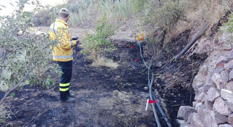 Varios agentes de la Brigada de Investigación de Incendios Forestales (BIIF) del Cabildo de Gran Canaria se encuentran en el lugar recogiendo pruebas e investigando las posibles causas del fuego.