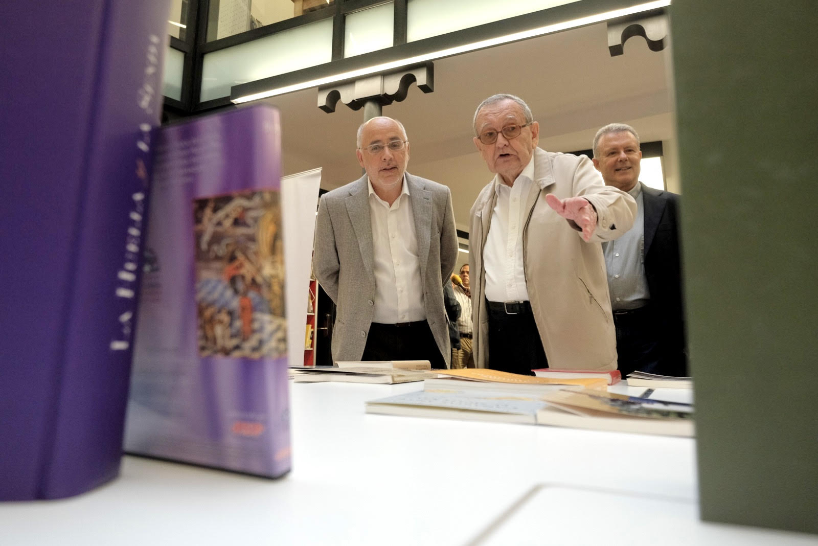 El presidente del Cabildo de Gran Canaria, Antonio Morales, recibió hoy de manos del sacerdote e intelectual aruquense Julio Sánchez el voluminoso fondo bibliográfico del que es autor con temas que van del papel de la Iglesia en Canarias a personajes ilustres de las Islas.