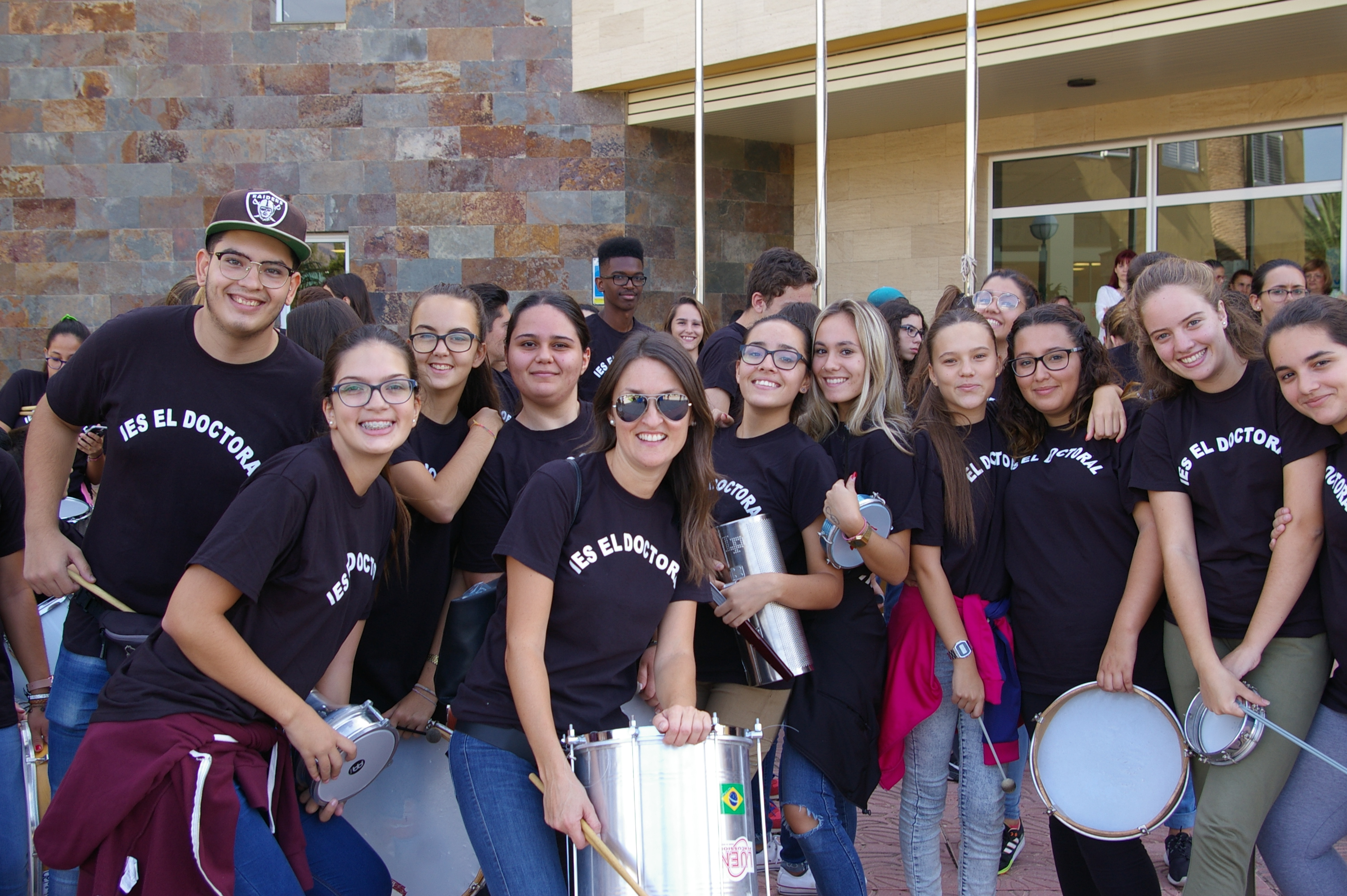 El alumnado del IES Doctoral llegó hasta las oficinas municipales, donde fue recibido por la alcaldesa Dunia González, concejales y concejalas del grupo de Gobierno y trabajadores del Ayuntamiento que quisieron apoyar el acto. La batucada del centro dio paso a una ‘performance’ y se hizo lectura de un manifiesto en el que los jóvenes recordaron que “en nuestra sociedad, los niños y las mujeres son las víctimas más afectadas por esta lacra social. Y  es a ellos a los que tenemos que prestar las ayudas más inmediatas. No podemos permitir que ninguna persona se sienta excluida socialmente y para ello tenemos que ser solidarios y ayudar”.