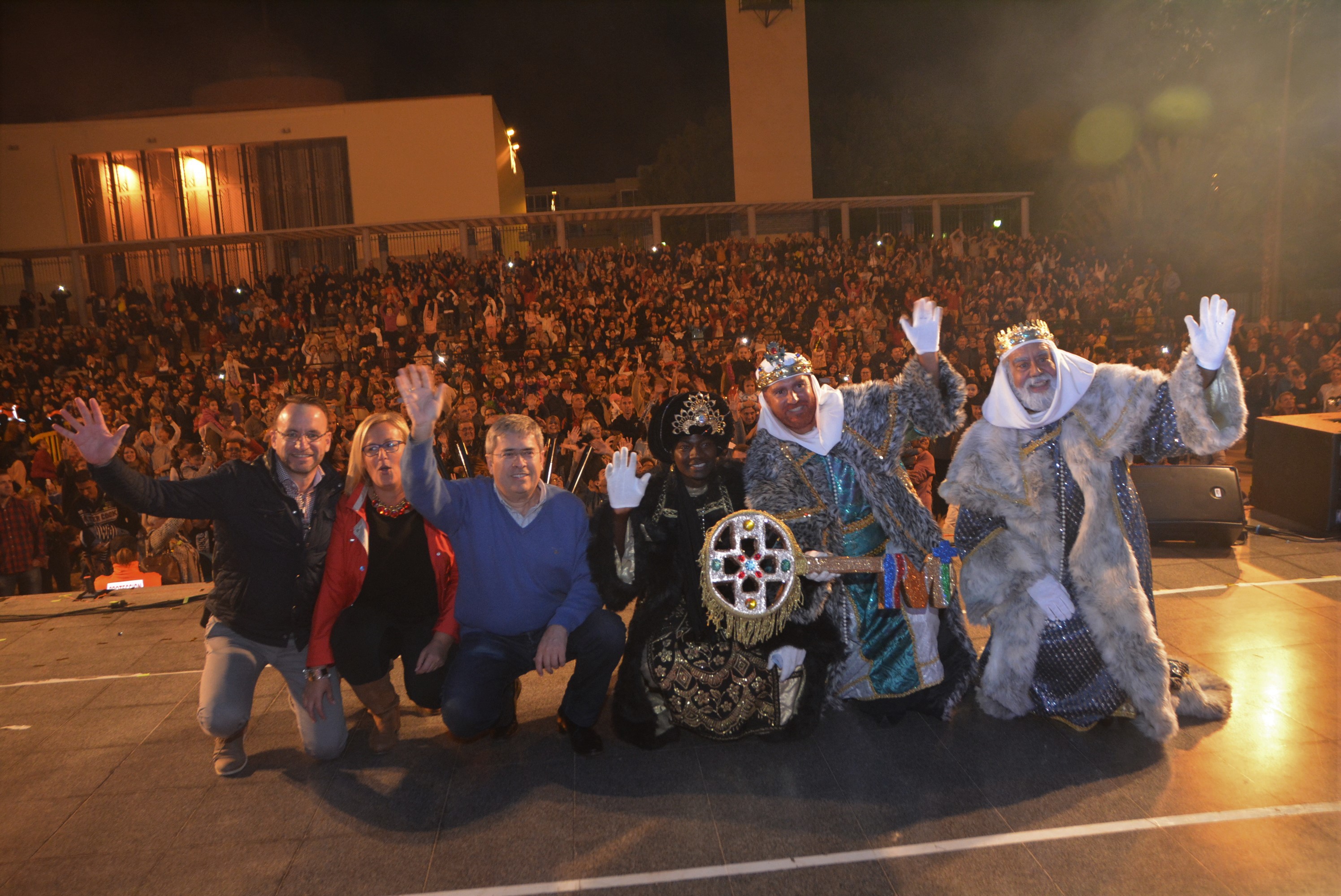 Antes de la comitiva llegara al punto final de su recorrido, en el Parque de San Fernando, las gradas de este recinto ya estaban abarrotadas, incluso de algunos niños rezagados, que querían esperar a última hora para entregar en mano su carta a los Reyes Magos. Bajo la conducción de Roberto Herrera, una entretenida gala musical hizo más agradable la estancia y espera del respetable, procurando fundamentalmente el entretenimiento de los más jóvenes, mientras la caravana real accedía al parque y los gobernantes municipales les esperaban con la nueva llave maestra para facilitar el reparto.