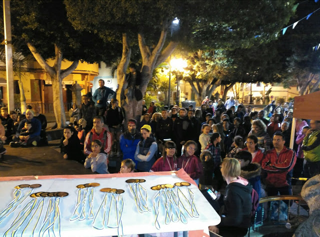 Toda una fiesta del deporte de la orientación que finalizó a las 20:00 horas con la entrega de trofeos de manos del concejal de deportes David Navarro Cabrera y miembros de los clubes organizadores, O-rientate y Agüico.