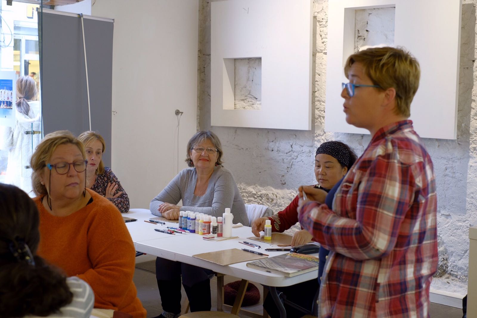 Para comenzar, los alumnos aprenden a distinguir los materiales más adecuados para realizar la labor, entre los que destacan pinceles hechos con pelo natural –de poni o lobo-, un bolígrafo para repasar el boceto, tela sin mezclas artificiales y una base aislante que no absorba la pintura.
