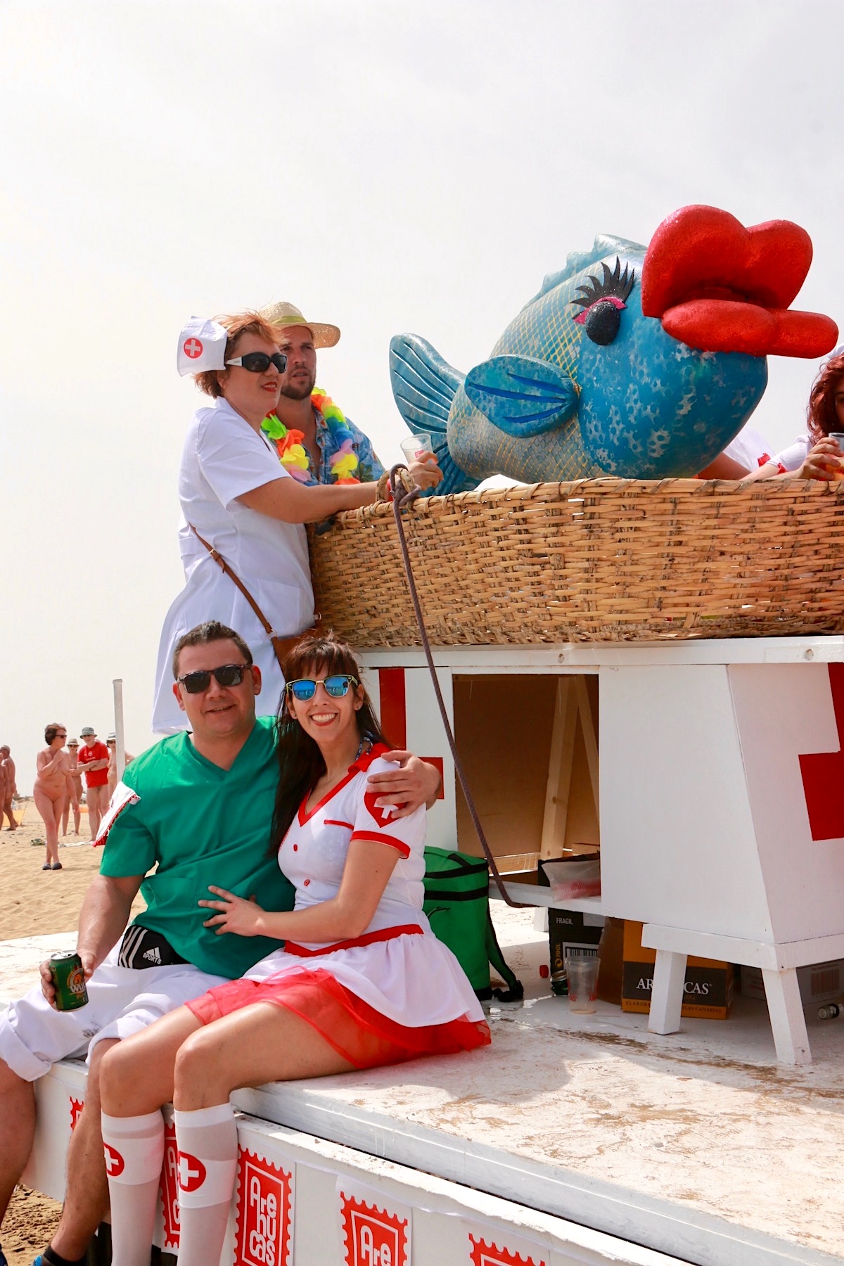 Ante la mirada de la comitiva festiva, que ganó cada vez más adeptos, la inverosímil situación recreó una intervención quirúrgica en la que se extrajeron de su interior toda clase de objetos estrafalarios.