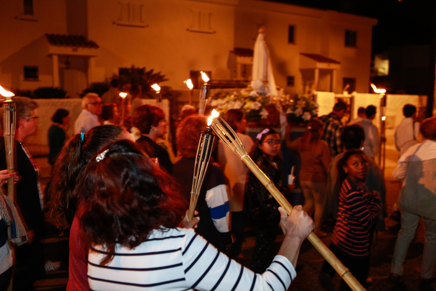 Durante el desplazamiento portaban las características antorchas encendidas y candelabros que identifican esta singular procesión, que estuvo acompañada por fuegos artificiales y voces que gritaban “viva la virgen de Fátima”.