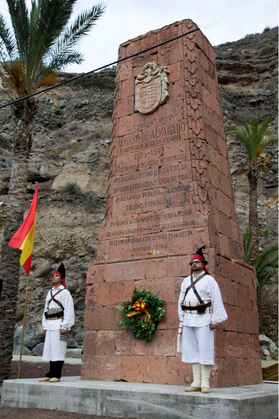 En la Plaza del Pino, en el Castillo de Casa Mata, el Cabildo de Gran Canaria emplaza en lugar preferente un monumento de cantería roja, tronco piramidal cuadrada, en honor al Gobernador Militar Alonso Alvarado y los 59 restantes héroes caídos en el ataque contra los holandeses en 1599. Autoridades presentes en la inauguración el presidente del Cabildo Insular de Gran Canaria, D. Federico Díaz Bertrana y el General Gobernador de la Plaza  D. Alfonso Pérez Viñeta Lucio. Acuden al acto todos los alcaldes de los municipios de Gran Canaria y cuerpo consular acreditado en la Isla, entre otros.