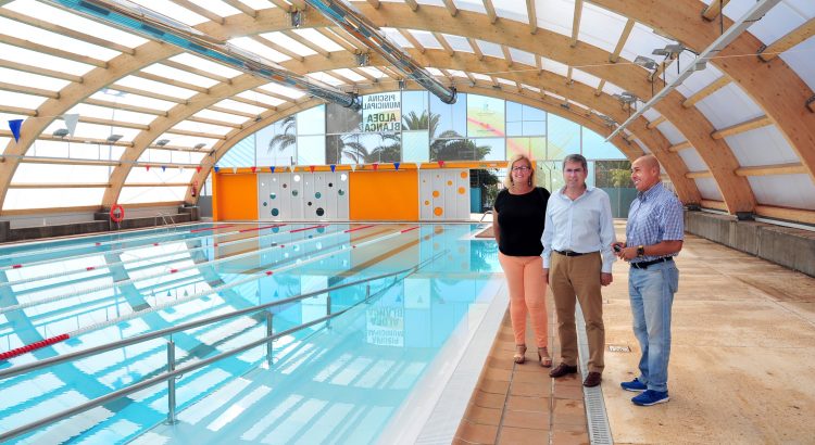 Los vecinos de Aldea Blanca ya pueden disfrutar de su piscina, de nuevo, al acabarse las obras de mejora dispuestas por el Ayuntamiento de San Bartolomé de Tirajana para lograr un mejor rendimiento de la instalación y un mejor servicio a los usuarios de este coqueto recinto. Para comprobar el buen estado de la instalación, el alcalde del municipio la visitó el pasado lunes, acompañado de la primera teniente de alcalde, Elena Álamo, y el concejal de Deportes del Consistorio tirajanero, Roberto Martel Quintana.