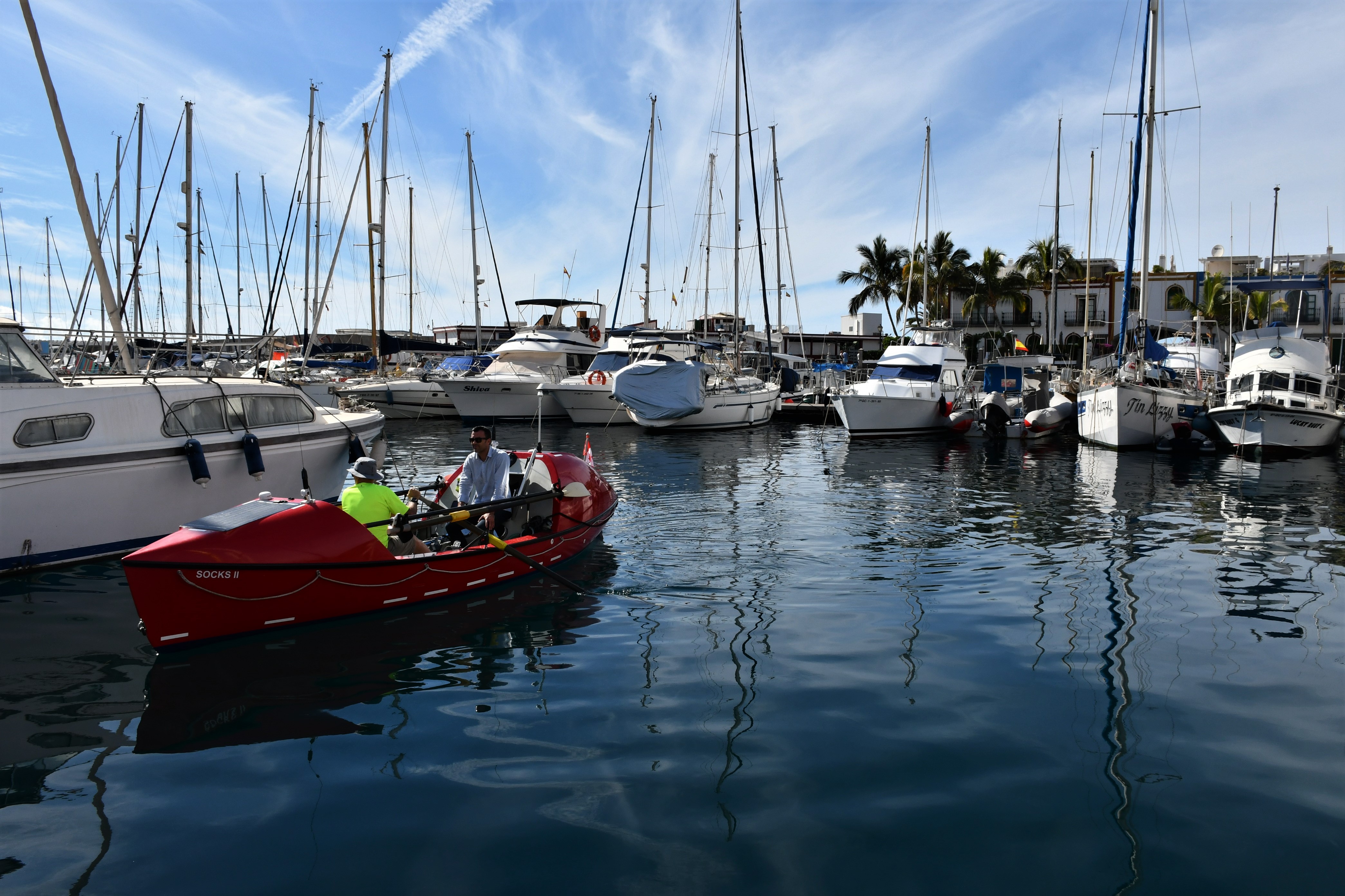 El concejal de Deportes conoció de la mano del canadiense las características de su bote de siete metros de eslora, sin motor y con unos remos de fibra de carbono. Colin Sanders cruzará los 4.000 kilómetros que separan Puerto de Mogán con Barbados, en el Caribe, en un tiempo estimado de 90 días. El canadiense lleva dos años entrenando para completar la aventura de cruzar el océano Atlántico con un bote a remo, hazaña “que han realizado menos de 30 personas en la historia”, apuntó Sanders.