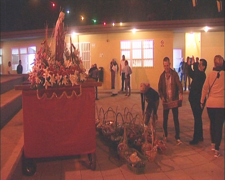 Al finalizar la Procesión se realizó tradicional ofrenda ante las imágenes. Los alimentos recogidos se destinarán a Cáritas de Agüimes.