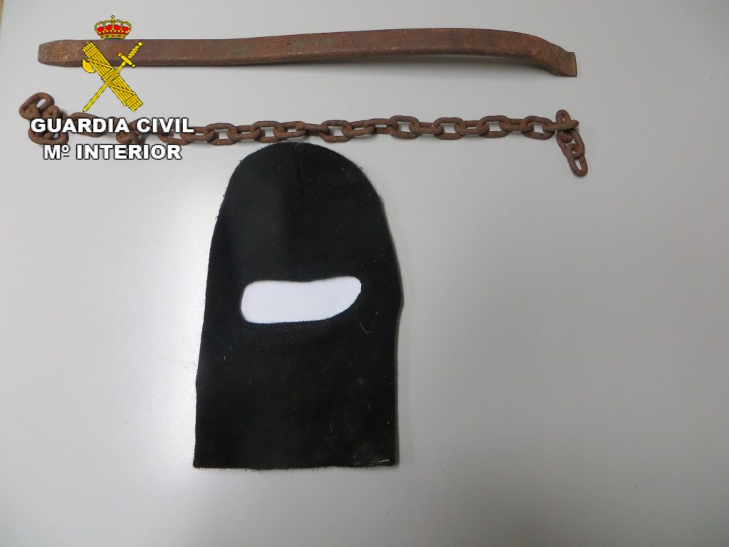 La Guardia Civil pudo además recuperar varios efectos robados (herramientas, electrodomésticos y un mueble) que fueron devueltos a sus legítimos propietarios; además se le intervino los objetos con los que presuntamente cometía los delitos, como un pasamontañas y una pata de cabra, con la que forzaba las puertas o ventanas.