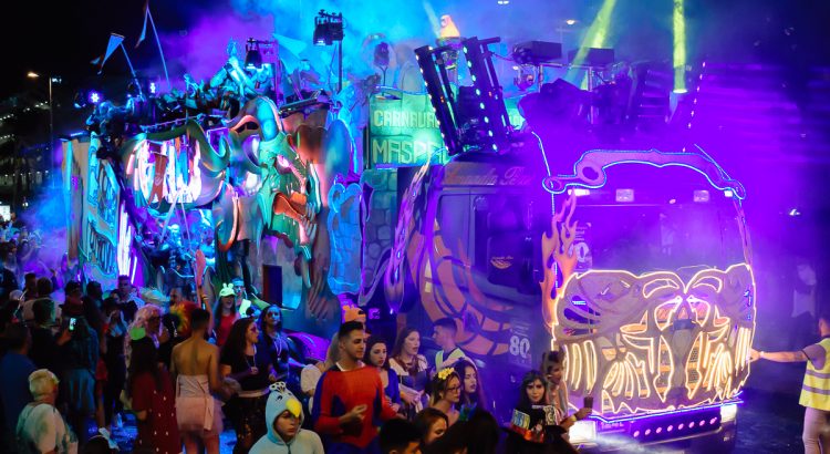 A las 17:00 horas el pistoletazo de salida abrió el desfile en la zona de El Veril de Playa del Inglés, con la presencia de las autoridades locales, a ritmo de bazucada, comparsas y murgas para animar las calles principales de la zona turística: Avenida de Italia, Avenida de Gran Canaria y Avenida del Touroperador TUI.