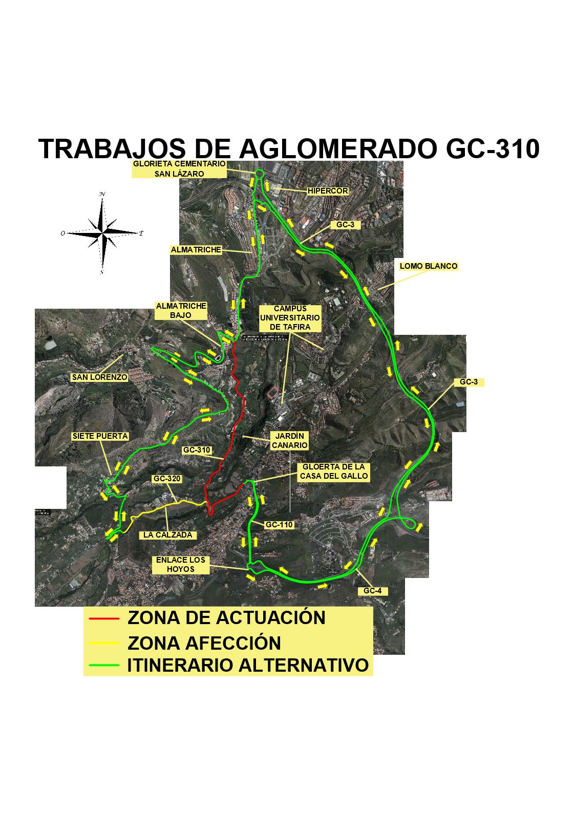 Los trabajos, que incluyen la pintura de las marcas viales y la señalización, tendrán una duración aproximada de 2 semanas y se realizarán de 9.30 a 18 horas, tramo horario en el que la vía debe cerrar, por lo que los conductores deberán estar atentos a los desvíos para los recorridos alternativos por la variante de Tafira y la Circunvalación o por la carretera de San Lorenzo (GC-308).