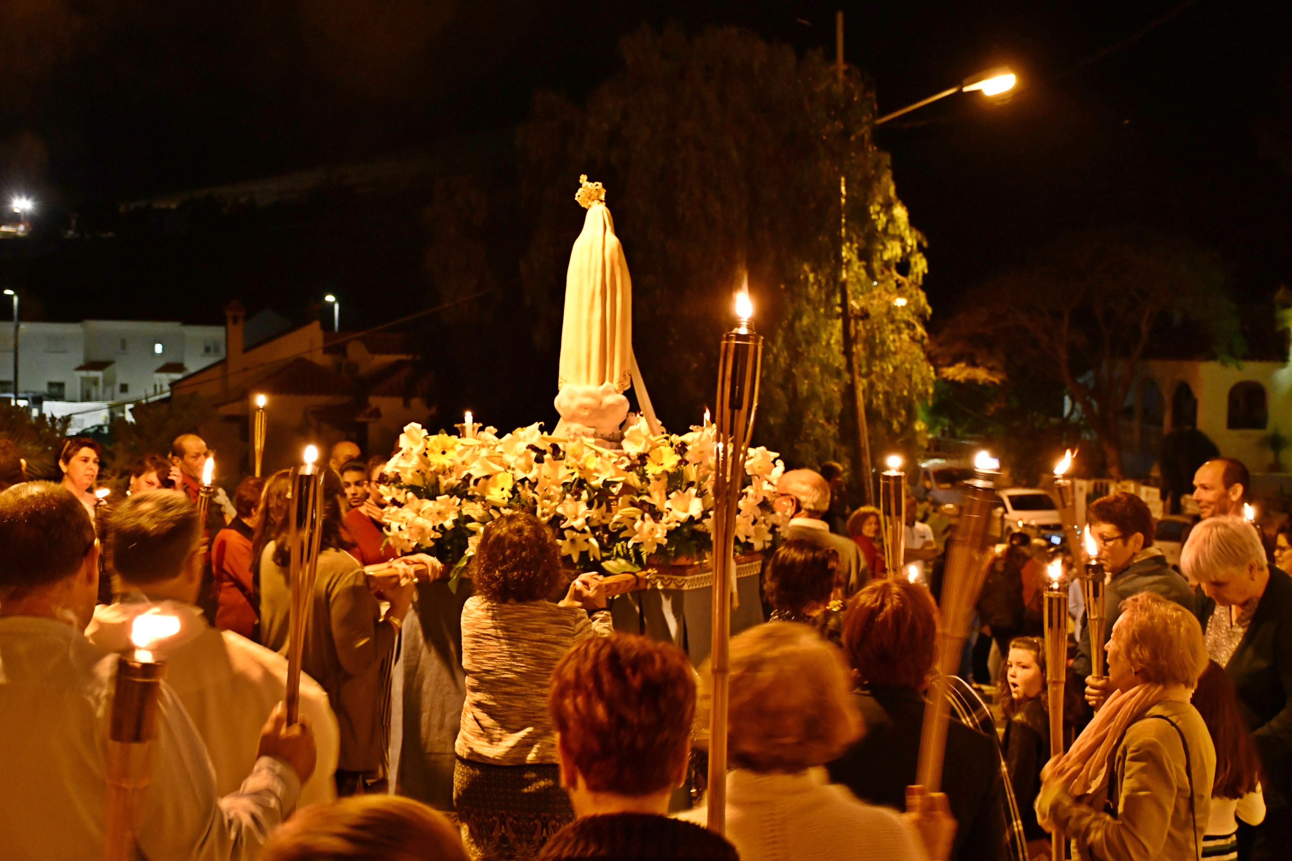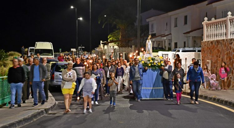 La comitiva se desplazó por las calles del barrio junto a la Virgen y los vecinos, en los que estuvieron incluidos jóvenes, mayores y familias. La procesión de las antorchas se celebra cada año el 13 de mayo. Se trata de un acto especial ya que la Virgen de Fátima es la patrona del barrio. Durante el recorrido los vecinos portaron las características antorchas encendidas que identifican esta procesión, que finalizó en la plaza junto a la iglesia con el encendido de unas “cascadas de fuego” y vítores a la Virgen de Fátima.