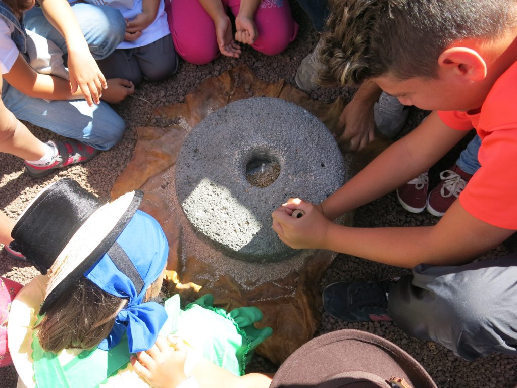 El director de Tibicena Arqueología y Patrimonio, que gestiona el Centro de Interpretación La Fortaleza, destaca la implicación de los vecinos y vecinas de la zona, “que nos han prestado las cabras, los caballos para la trilla y hasta nos han ofrecido los hornos de leña de sus casas para que los pequeños puedan hacer pan de puño y también comérselo”. Marco Moreno destaca que“ también con la colaboración del Ayuntamiento de Santa Lucía preparamos talleres de pintaderas con barros o para hacer pan de puño y se lo puedan comer aquí y cuentacuentos con historias canarias, que contribuye a acercar nuestra historia y cultura a los chiquillos”.