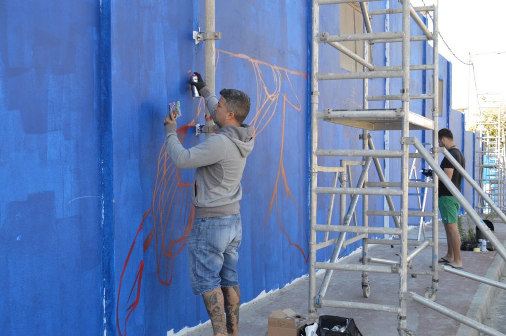 Éstos/as comenzaban también a primeras horas a pintar las paredes exteriores del almacén de Bonny, que suman un total de 1200 metros de muro. Aunque a cada artista se le ha asignado unos metros de pared, lo que se busca en este encuentro es la unión y el trabajo conjunto. La temática será abierta pero haciendo alusión al modo de vida isleño, a la fauna y flora de las islas, estando los colores también vinculados a Canarias, predominando dos tonalidades de azul para hacer alusión a los fondos marinos y al cielo.