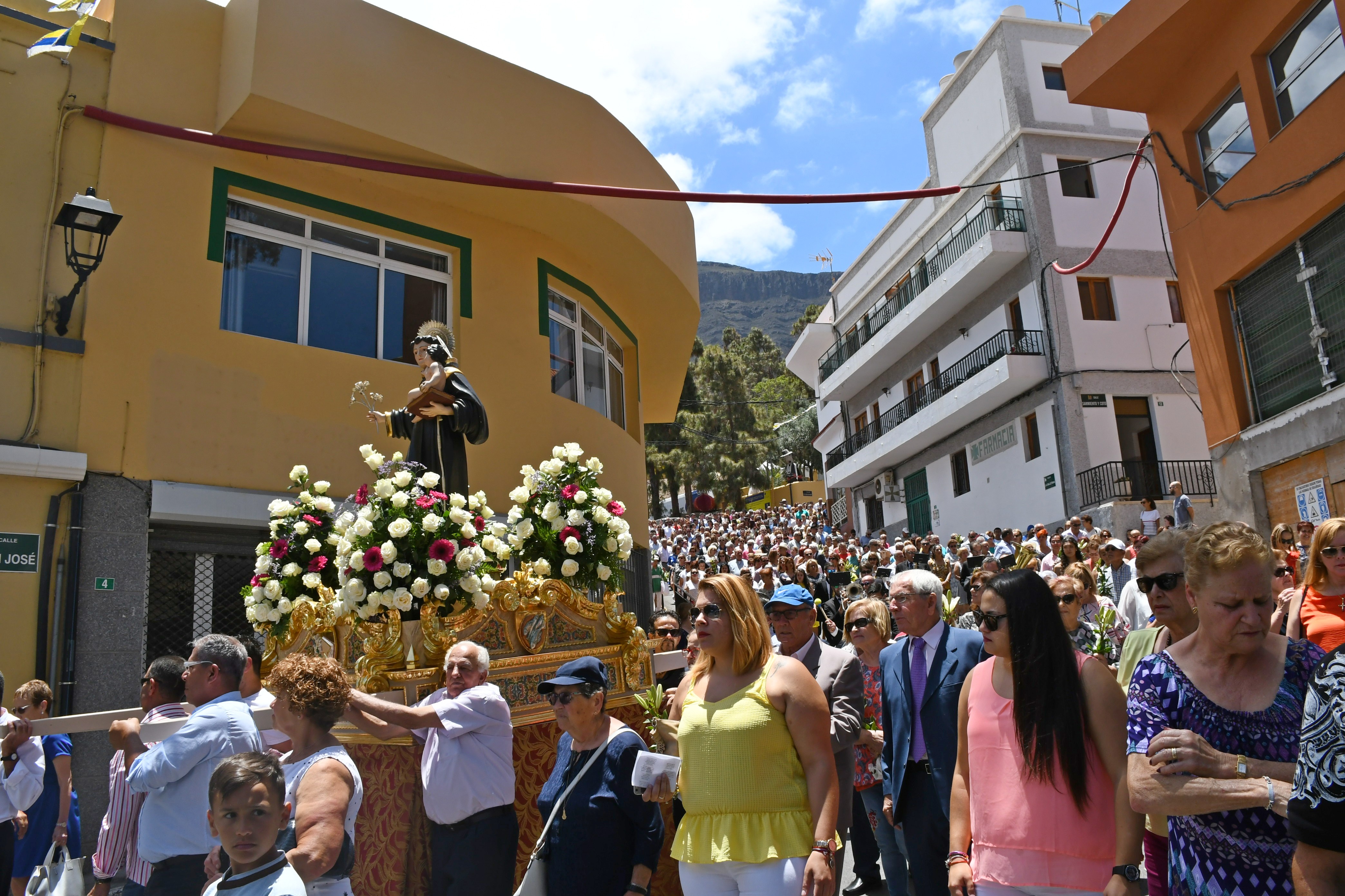 Hacia las 12:00 horas comenzó la celebración de la eucaristía, seguida de la procesión con la imagen de San Antonio que recorrió las calles del pueblo de Mogán, finalizando en el pórtico de la iglesia, donde se concluyó la celebración con el popular ‘Canto de los pajaritos’ y la bendición de los panes y los lirios.