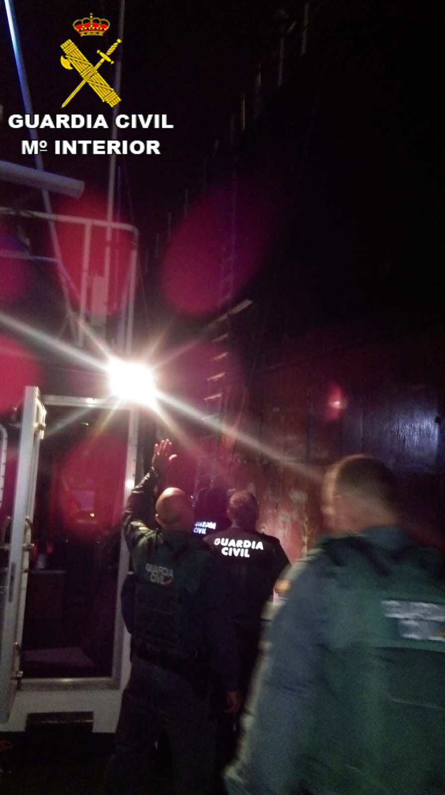 Tras valorar la información la Guardia Civil formó un equipo de respuesta inmediata que, a bordo de la patrullera Río Tambre de la Guardia Civil, abordó en torno a las 01:00 horas de la madrugada al buque en cuestión tras el permiso para subir a bordo del Capitán del mismo.