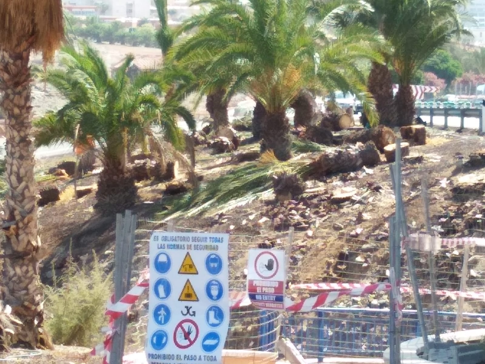 En los últimos días los responsables de la obra de la rotonda de El Veril (Consorcio Turístico, Ayuntamiento de S.B. de Tirajana y Cabildo) proceden a talar salvajemente las palmeras canarias que durante años se han cuidado y mantenido en la zona de acceso a la Playa de El Inglés. Demostrando una absoluta falta de sensibilidad con las palmeras.