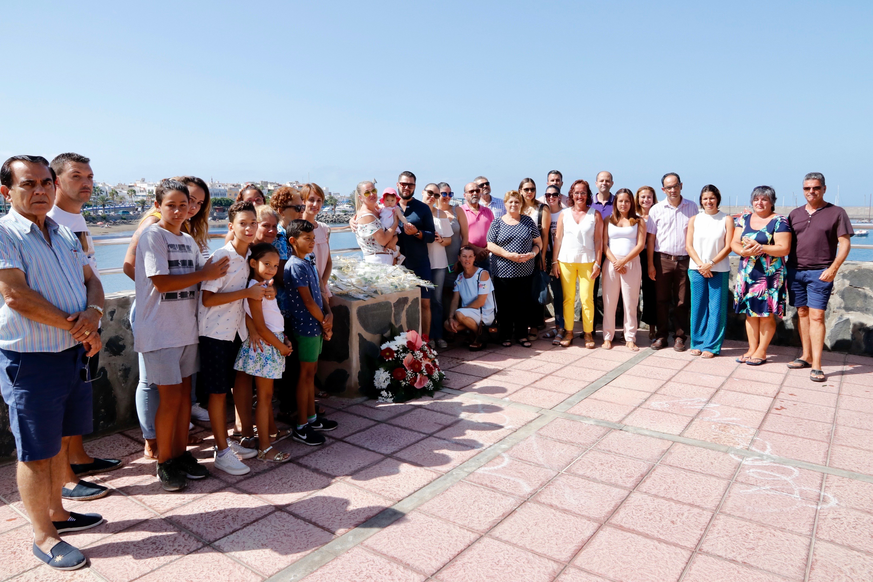 En el homenaje han participado miembros de la Corporación de Mogán, ciudadanos anónimos y familiares de los fallecidos Rubén Santana Mateos, Zenaida Hernández Martín, y su bebé, Pedro Javier Núñez Hernández.