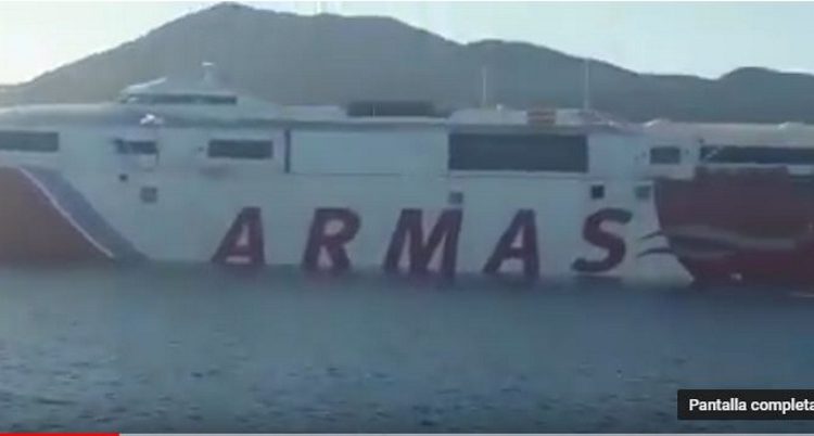 (VIDEO)Unos de los fast Ferrys de la compañia armas sufre una colisión en alta mar supuestamente con una embarcación de recreo
