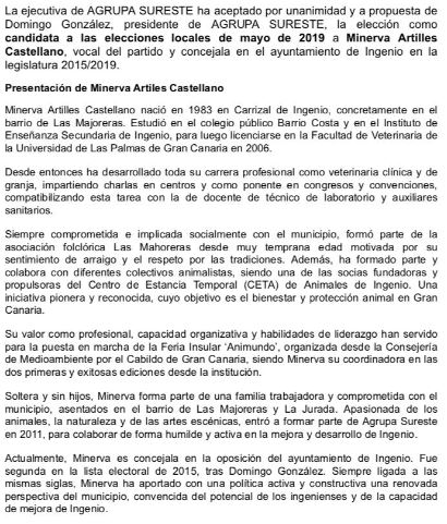 Minerva Artiles Castellano candidata a la Alcaldia de Ingenio “Agrupa Sureste” 26 febrero, 201926 febrero, 2019 admin Actualidad, Ingenio Facebook0Twitteremail