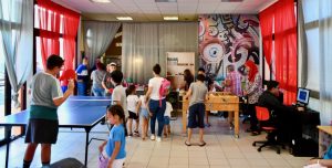 El centro, que funcionará en horario de tarde coincidiendo con la actividad de la Asociación de Vecinos El Valle de Puerto Rico, está equipado con consolas de última generación, tres televisores –dos para las consolas y otro para ver programación en antena o bajo demanda–, conexión a Internet, futbolín, ping pong, juegos de mesa y dos ordenadores. También se han colocado varios escritorios, pufs, un sofá y césped artificial para ambientar la zona de gamer.