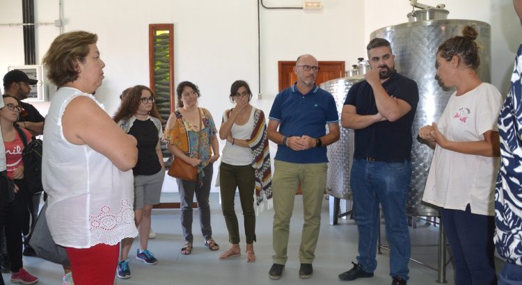 A continuación, el alumnado de la Escuela de Hostelería Europea tuvo la oportunidad de ver las instalaciones de la Bodega Municipal “Señorío de Agüimes” donde fueron recibidos por las componentes del equipo municipal de Desarrollo Rural.