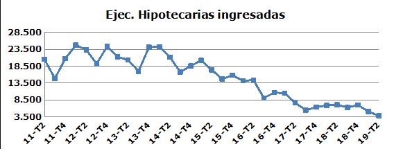 Durante el segundo trimestre de este año se presentaron 3.857 ejecuciones hipotecarias, lo que supone un descenso interanual del 46 por ciento.