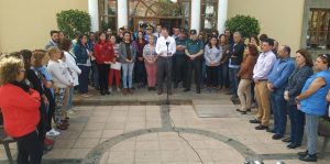 En la mañana de hoy, a las 11:30 horas, en la puerta principal del Ayuntamiento de Agüimes, el Alcalde, Óscar Hernández Suárez, acompañado de concejalas y concejales, trabajadoras y trabajadores del ayuntamiento, así como vecinas y vecinos, después de guardar un minuto de silencio pasó a leer el siguiente manifiesto: