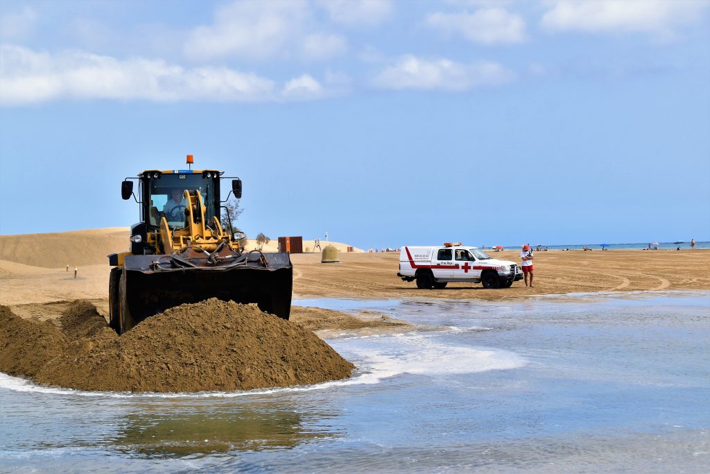 Así, Amado Ramos desplegó una vez más su maestría con el tractor operado sobre el agua y la arena, cuestión nada fácil, y ante el presidente insular, Antonio Morales, la alcaldesa de San Bartolomé de Tirajana, Concepción Narváez, la consejera de Medio Ambiente, Inés Jiménez, el primer teniente alcalde del municipio, Samuel Henríquez, y de la atónita mirada de algunos turistas, se metió en el agua para cruzar la vaguada y en cuestión de minutos movilizó 40 toneladas de arena que taponaron la salida, pues una vez que la Charca alcanzó su máximo nivel, lo siguiente es empezar a perder agua, pero el objetivo es que la conserve con esta ayuda que imita la dinámica natural.