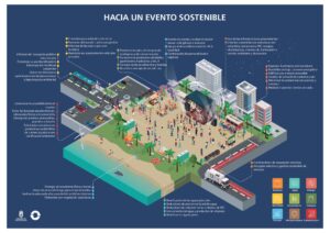 De esta manera, comprar productos a granel y locales, facilitar vasos reutilizables, poner suficientes contenedores de separación selectiva, instalar grifos con temporizadores automáticos, aprovechar al máximo la luz natural y edificaciones que cuenten con energías renovables, hacer un análisis de la huella de carbono asociada, reducir el número de focos lumínicos, distribuir el sonido de manera eficiente o poner a disposición de los asistentes transporte público son algunas de las principales actuaciones para conseguir que un evento sea más sostenible.