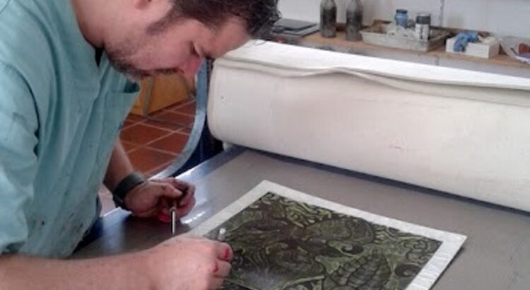 Leiko trabaja el grabado en relieve para plantear su propuesta. “Esta técnica se me antoja afín al universo que plasmo, pues está tradicionalmente asociada a los orígenes del grabado, a lo emergente en la ilustración gráfica, también a los albores de la aventura editorial, donde la ilustración gráfica, también a los albores de la aventura editorial, donde proliferaron los bestiarios y toda clase de quimeras híbridas que poblaron el subconsciente medieval desde los incunables a las plazas públicas”, señala el artista.