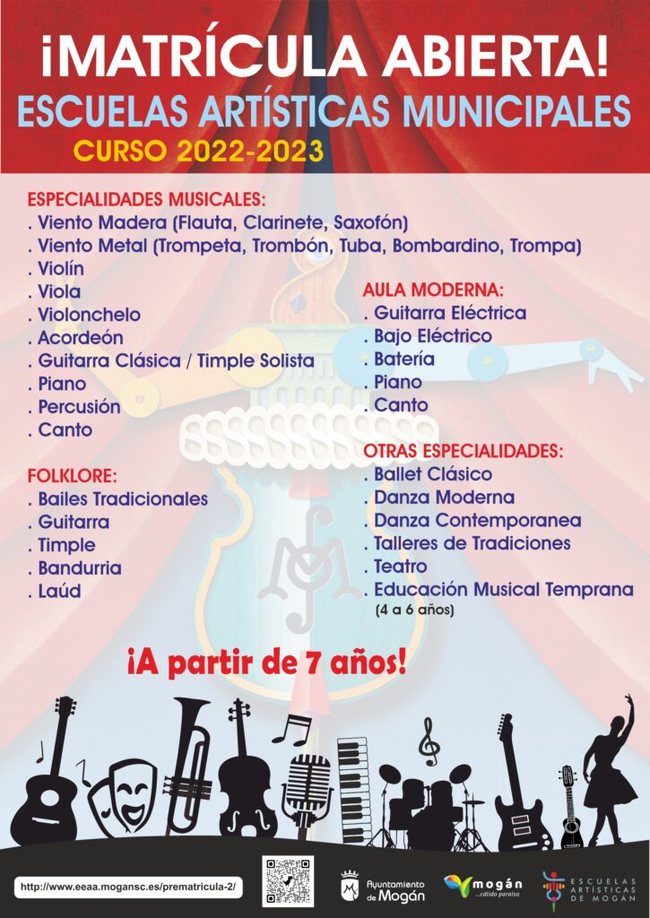 También se encuentra disponible la matrícula de las Escuelas Artísticas de Mogán, que regresan este nuevo curso 2022-2023 con múltiples especialidades en música, folclore, danza y teatro, todas disponibles para personas a partir de los siete años. La inscripción se puede realizar en la página web del mencionado servicio del Ayuntamiento de Mogán.