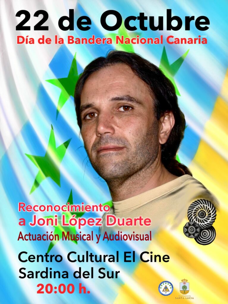 Por la presente, tenemos a bien comunicarles, que el próximo sábado día 22 de octubre de 2022, a las 20:00 horas, en el Centro Cultural El Cine, de la localidad de Sardina del Sur, del término municipal de Santa Lucía de Tirajana, se realizará, dentro de los actos de celebración del Día de la Bandera Nacional Canaria, un reconocimiento especial a título póstumo a Joni López Duarte, que fue funcionario del Ayuntamiento de Santa Lucía de Tirajana, impulsor de la Jurria Humiaga, asociación defensora del salto de pastor, de la recuperación de senderos y de la cultura vinculada al pastoreo, amante de la naturaleza, del trabajo de las pieles, estudioso de las marcas de ganado en Gran Canaria, con la denominación de las orejas del tiempo e impulsor de encuentros culturales en la Caldera de las Tirajanas.