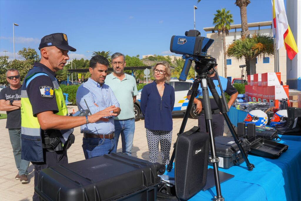 La Policía Local de San Bartolomé de Tirajana ha presentado hoy el nuevo equipamiento que se ha adquirido durante este último año y que incluye, entre otros, nueva uniformidad, nuevos vehículos y la adquisición de nuevas herramientas que les permite dar un salto de calidad y profesionalidad en la prestación del Servicio. Esto ha supuesto una inversión total de 348.000 euros, que vienen por un lado de la Mancomunidad de Medianías, con una aportación de unos 152.000 euros, y, por otro, por parte de la Concejalía de Seguridad Ciudadana y Policía Local, gestionada con Samuel Henríquez Quintana, con una aportación de 196.000 euros.
