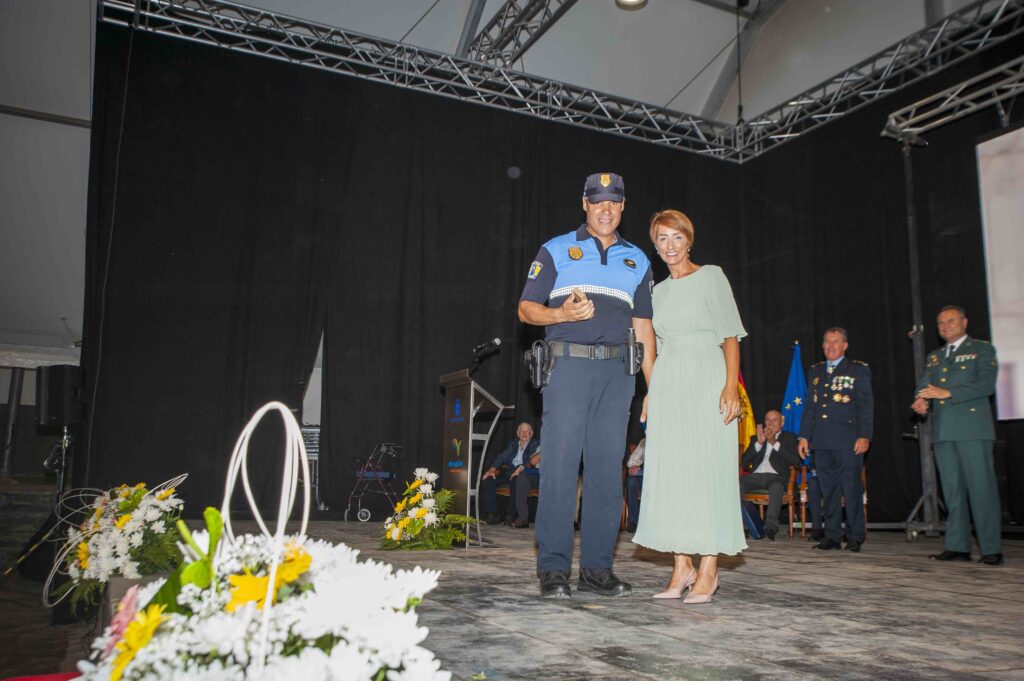 A todos ellos se dirigió la alcaldesa, afirmando sentir orgullo al presidir un acto en el que se reconoce “la dedicación profesional de nuestros policías locales y de Protección Civil, que sé lo dan todo para garantizan la seguridad de todos nuestros vecinos y vecinas y de las personas que nos visitan”. Bueno se mostró igualmente orgullosa al poder resaltar la labor de todos los agentes jubilados, e incluso de los ya fallecidos. “Sus familias hoy aquí presentes merecían recibir nuestro agradecimiento, que sentimos de corazón. A los que ya no están, y también a los jubilados, les tocó ejercer en otros tiempos, sin duda más complejos que los que ahora vivimos y que muchos de los que estamos aquí no llegamos a conocer”, dijo.