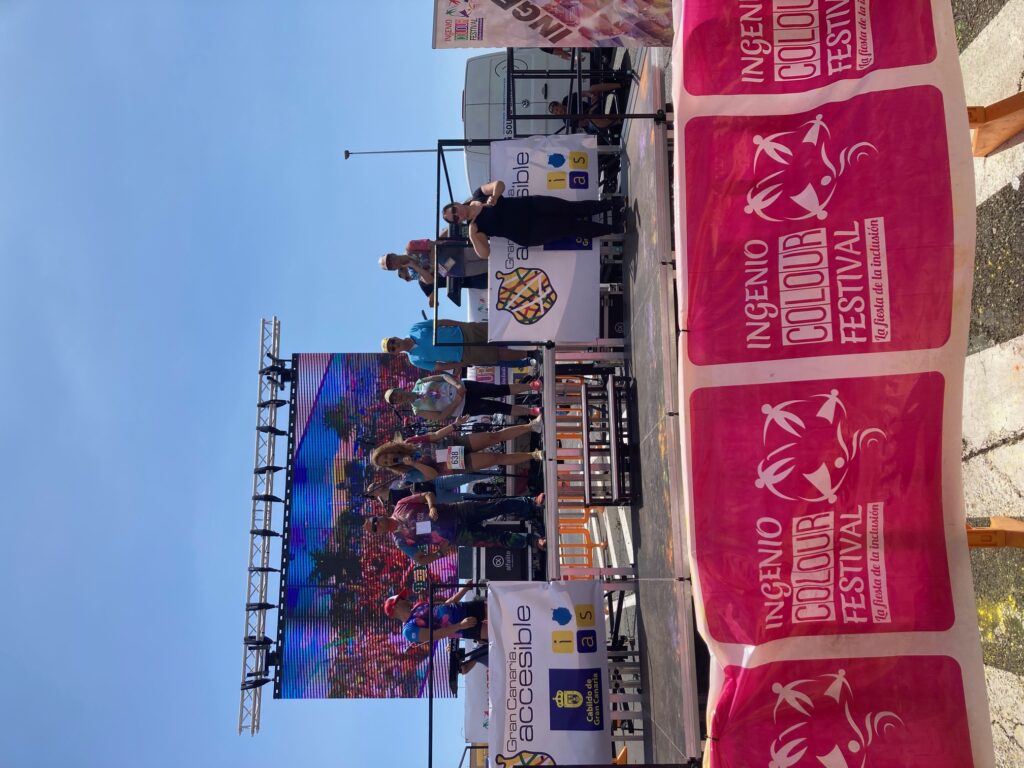 1100 personas se inscribieron para participar en la gran Fiesta de la Inclusión, la carrera de concienciación ‘Ingenio Colour Festival, Gran Canaria Accesible 2023’, a las que se unió un gran número de vecinos, vecinas y visitantes que no quiso perderse el regreso de esta celebración familiar que tiene como fin visibilizar los principios de diversidad, accesibilidad universal e inclusión social. Esta quinta edición se celebraba en la soleada jornada de este domingo, 11 de junio, en la Avenida Carlos V de Carrizal viviéndose un magnífico ambiente de energía positiva, alegría y diversión.