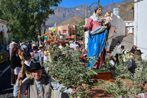 Desde por la mañana el sol alumbraba el palmeral de la Sorrueda. Las casas rurales de Santa Lucía casco estaban a tope y muchos habían traído sus caravanas para disfrutar de la última verbena de las fiestas y estar tempranito en el pueblo, aunque el inicio de la romería era al a una del mediodía.