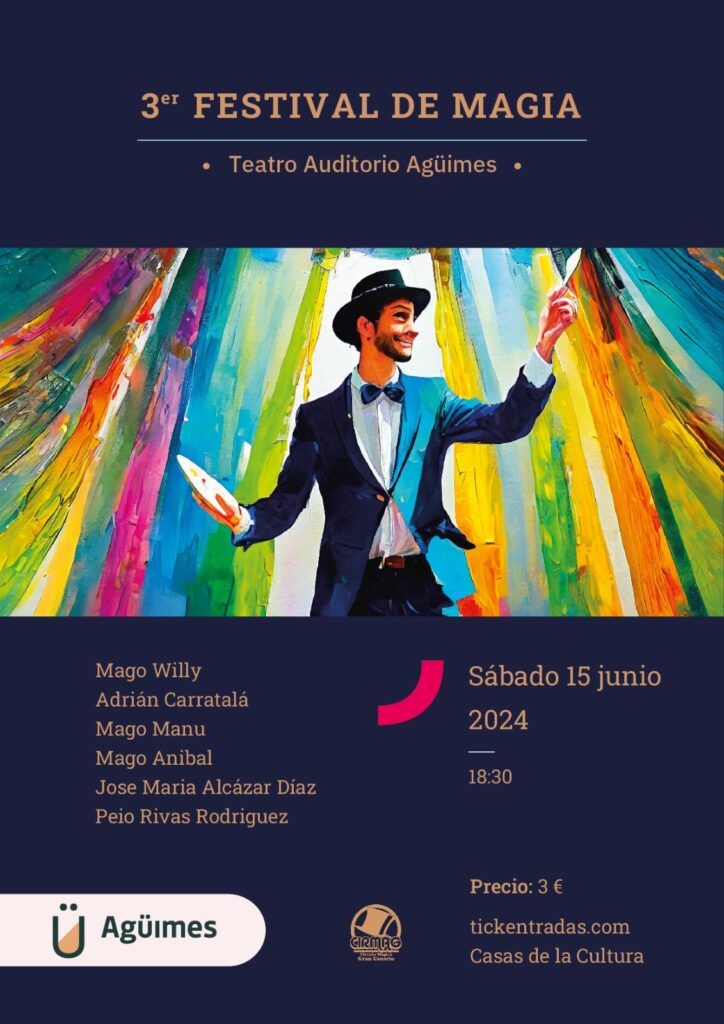 Llega una edición más el Festival de Magia de Agüimes al teatro auditorio de Agüimes este próximo sábado. Octavio Toledo, presidente de Cirmag, nos explica en el #batiburrillo que nos encontraremos en esta III edición del Festival de Magia de Agüimes, que cuenta con magos premiados a nivel nacional e internacional, como el Mago Manu, Adrián Carratalá y Katerina, Josemari Alcázar, Aníbal Mago y Peio Rivas y todos bajo la batuta del Mago Willy, que nos ofrecerán un espectáculo muy visual y divertido para todos los públicos. Aún quedan entradas para disfrutar del mundo de la magia este próximo sábado en el Teatro Auditorio de Agüimes.