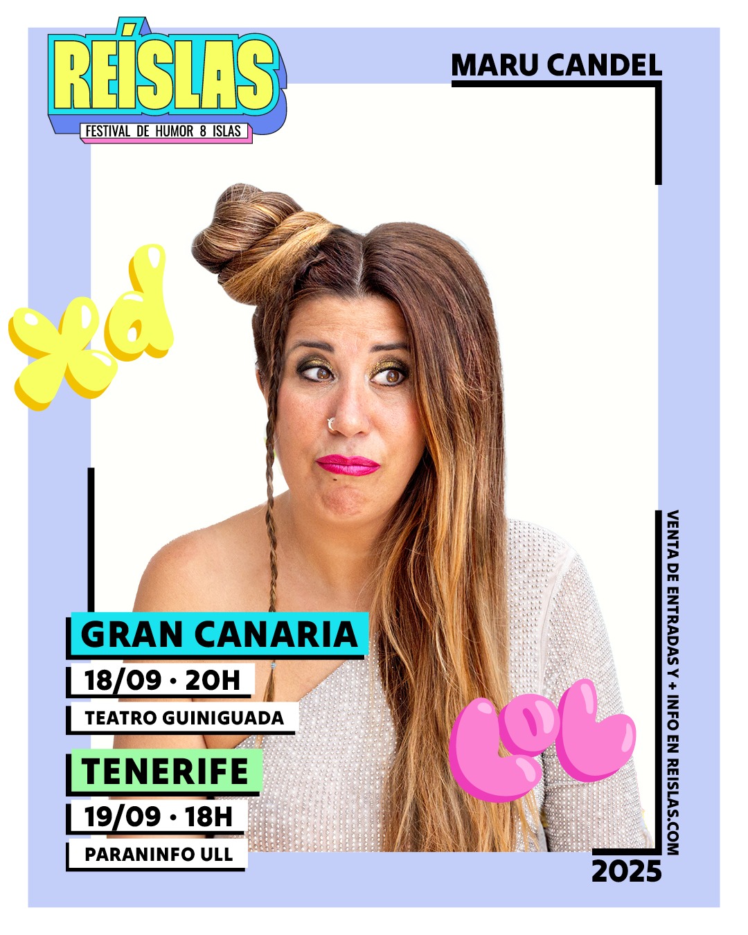 Sobre el Festival Reislas, dijo sentirse “súper feliz y afortunada” de compartir cartel con grandes humoristas nacionales, convencida de que la comedia es un vínculo necesario en tiempos tan convulsos. “A nadie le amarga una risa”, concluyó.