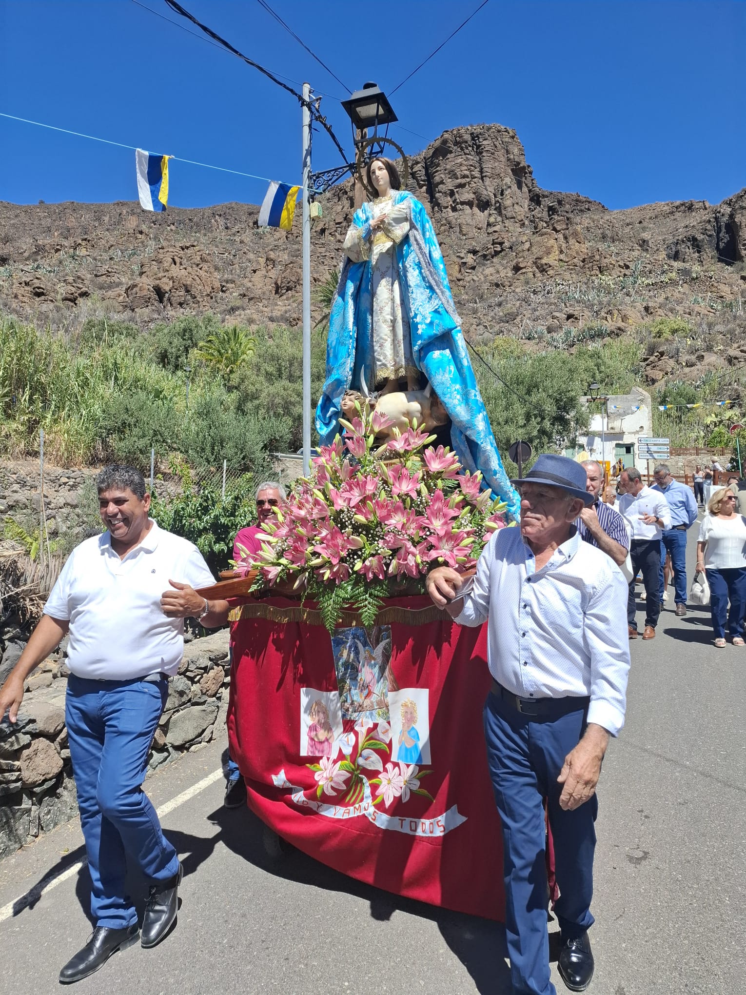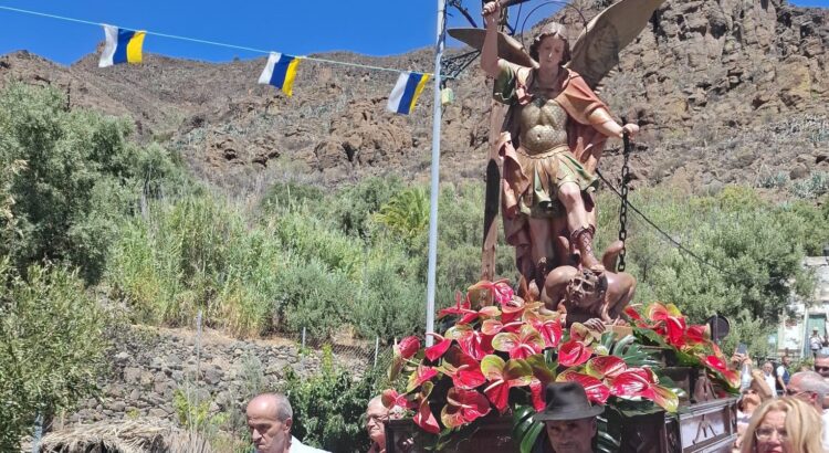 Al mediodía tuvo lugar la solemne eucaristía, presidida por el obispo auxiliar de Canarias, Cristóbal Déniz Díaz, y acompañada por la Agrupación Folclórica Susa Suárez. Tras la misa, la imagen de San Miguel Arcángel recorrió en procesión las calles de Temisas, acompañada por la música de la Banda Guiniguada.