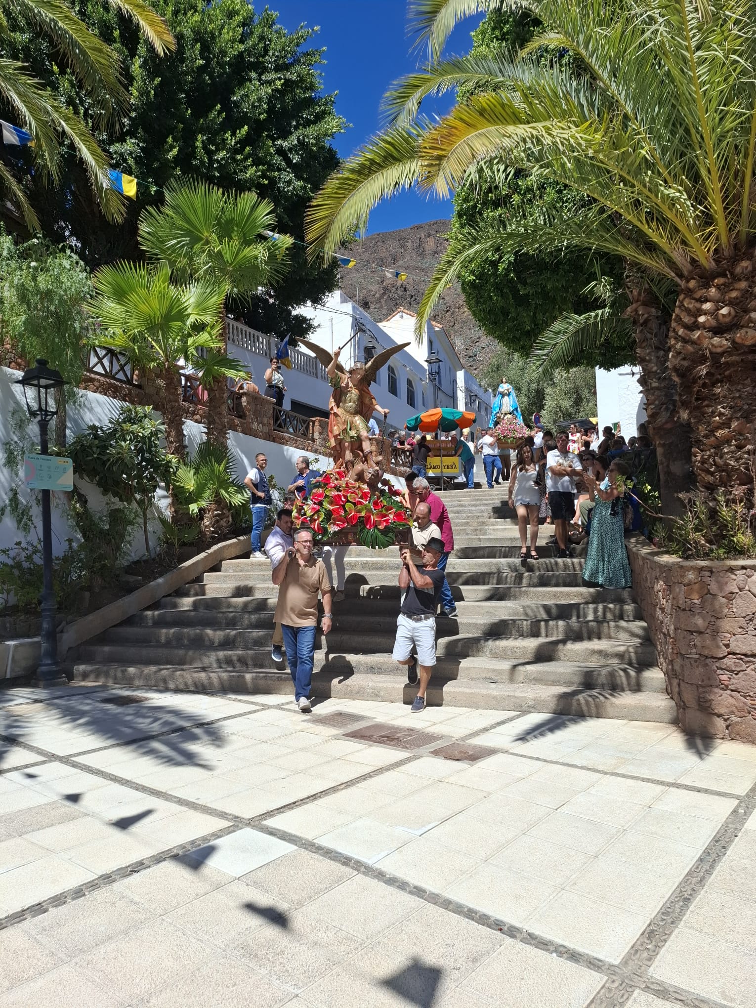 La programación arrancó desde primera hora de la mañana con la Diana Floreada, que recorrió las calles del pueblo al son de la Banda Guiniguada y las divertidas danzas de los papahuevos, finalizando en el parque de Los Olivos. A continuación, junto al Local Social Antonio Cerpa se celebró la feria de ganado, uno de los actos más esperados, que mantiene viva la tradición ganadera y campesina de la localidad.