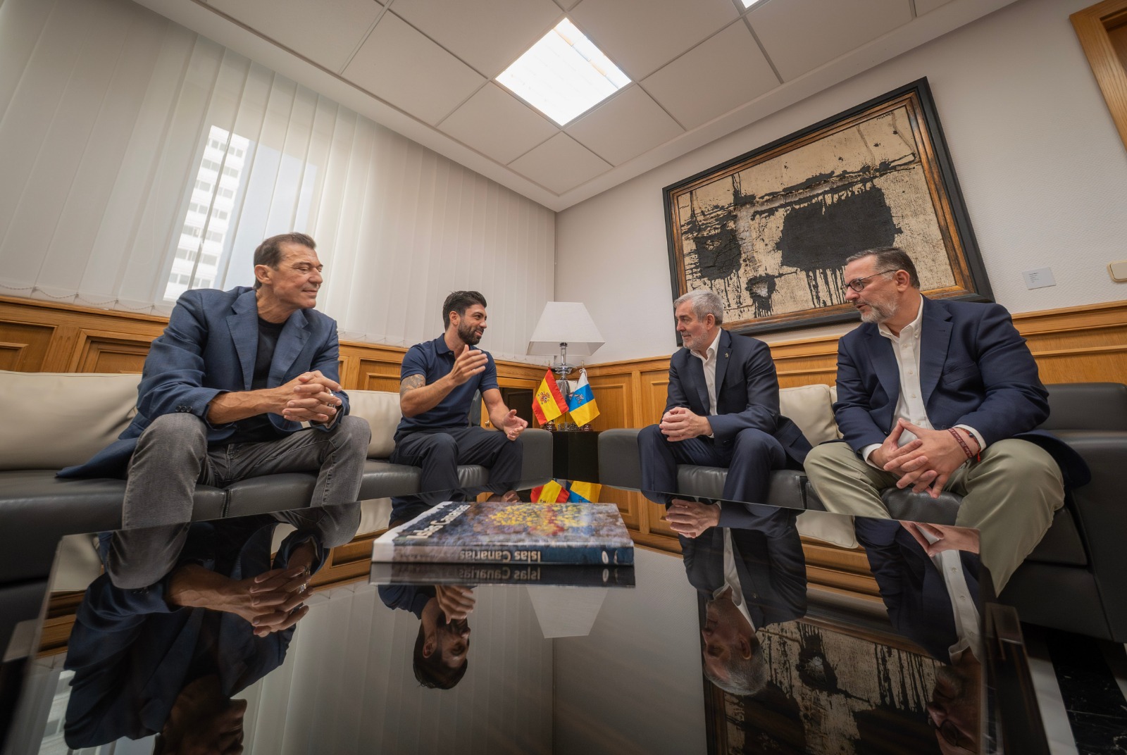 El presidente de Canarias, Fernando Clavijo, y el consejero de Educación, Formación Profesional, Actividad Física y Deportes, Poli Suárez, han recibido este viernes al clavadista Carlos Gimeno en reconocimiento a su brillante trayectoria y a los logros alcanzados durante la presente temporada, en la que se ha consolidado entre los mejores especialistas del mundo en salto de gran altura.