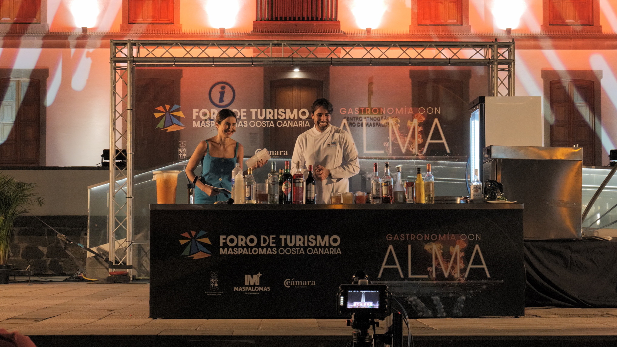 A continuación, el prestigioso coctelero Matteo Ciarpaglini, representante de Club Paradiso —Mejor Bar del Mundo 2022—, ofreció una demostración creativa con tres propuestas: Maspalomas Sunset Sprits, Maní Fashion y Meloneras Negroni, tres combinaciones que sorprendieron al público por su frescura, su estética y su evocación del carácter atlántico del destino.