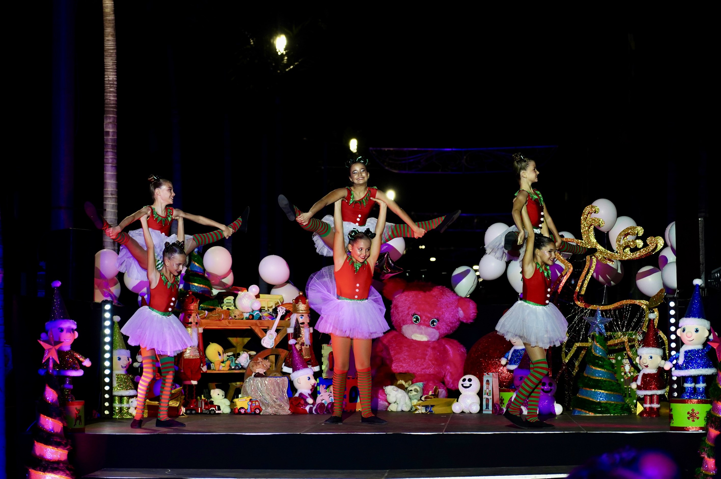 El espectáculo teatral y musical contó con Mingo Ávila como protagonista, las cantantes Marieme Abdullah y Elizabeth López Martel, y los acróbatas Leví y Estrella, y una decena de bailarines y acróbatas. El árbol de cinco metros de altura fue uno de los protagonistas del espectáculo, con su cambio de luces y con un mensaje a favor de la paz. Las encargadas de dar a la palanca del encendido fueron la profesora Luz Marina y Conchi, una trabajadora municipal del área de Comercio que este año se jubila.