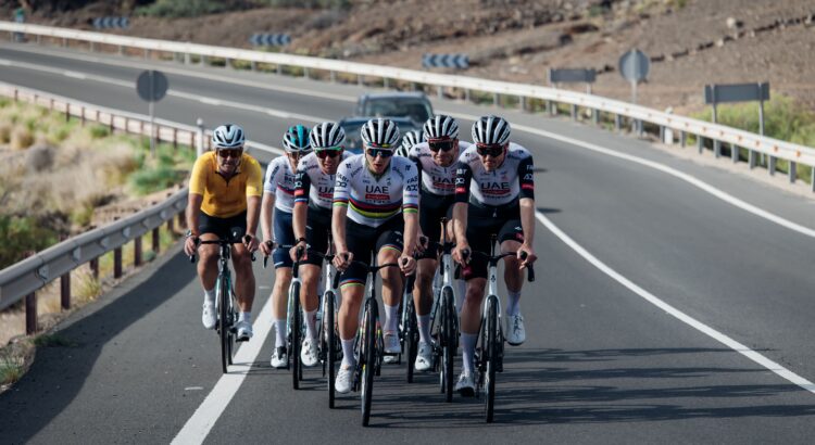 Durante la jornada de hoy, Tadej Pogačar y su equipo continuaron con su plan de entrenamiento recorriendo distintas carreteras de la isla de Gran Canaria. El grupo recorrió este jueves zonas como La Breña, Cazadores y Agüimes, aprovechando las condiciones ideales que tiene la isla para practicar el deporte de las dos ruedas.