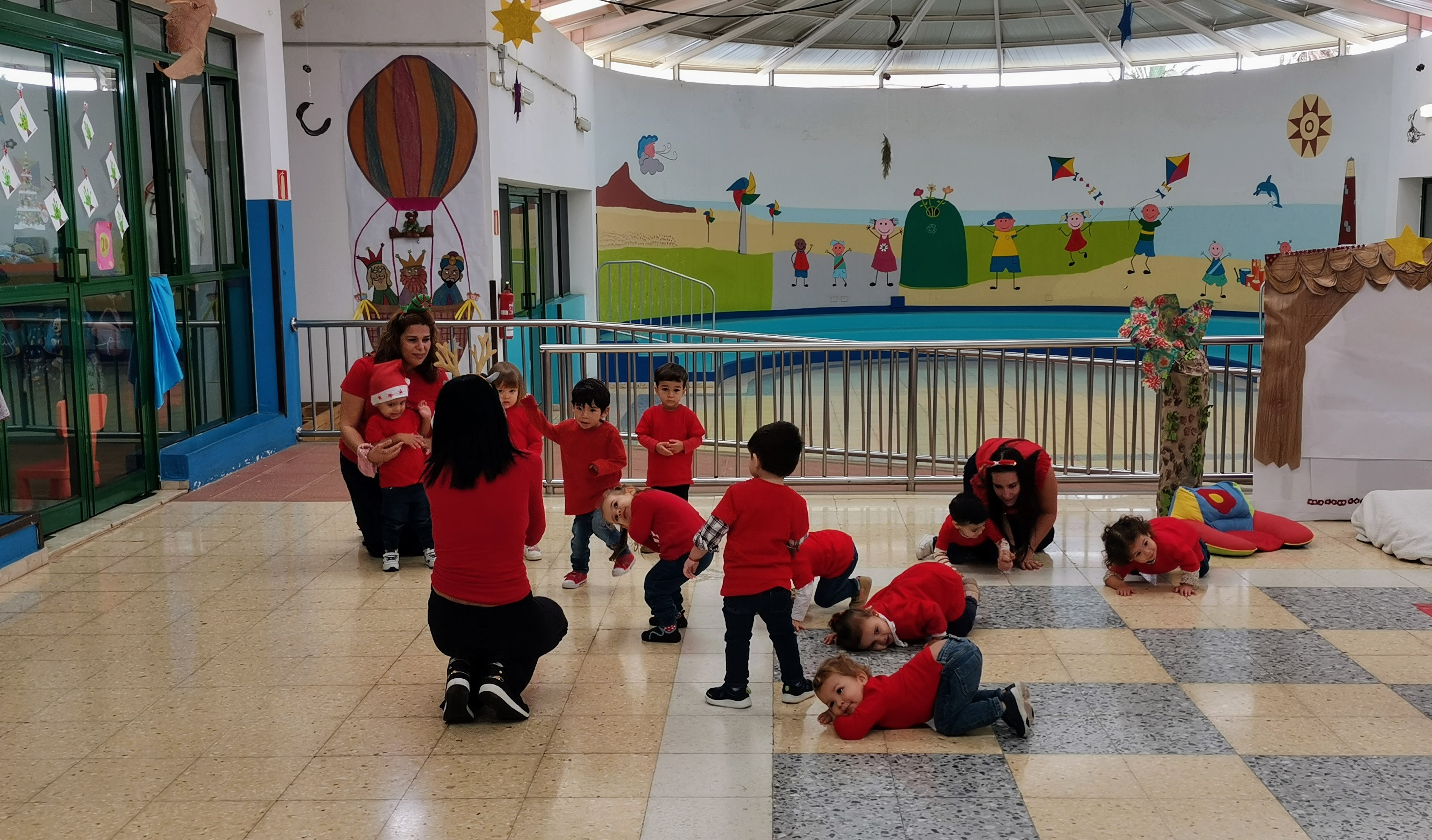 Además de este belén lleno de ternura, el alumnado, ataviado con jerséis de color rojo navideño, realizaron varios bailes siguiendo las instrucciones de sus tutoras. Los más pequeños, de 1 año, seguían los gestos de las profesoras y daban brincos con las caras llenas de alegría. Por su parte, los de 2 años acompañaron su particular coreografía cantando un villancico.
